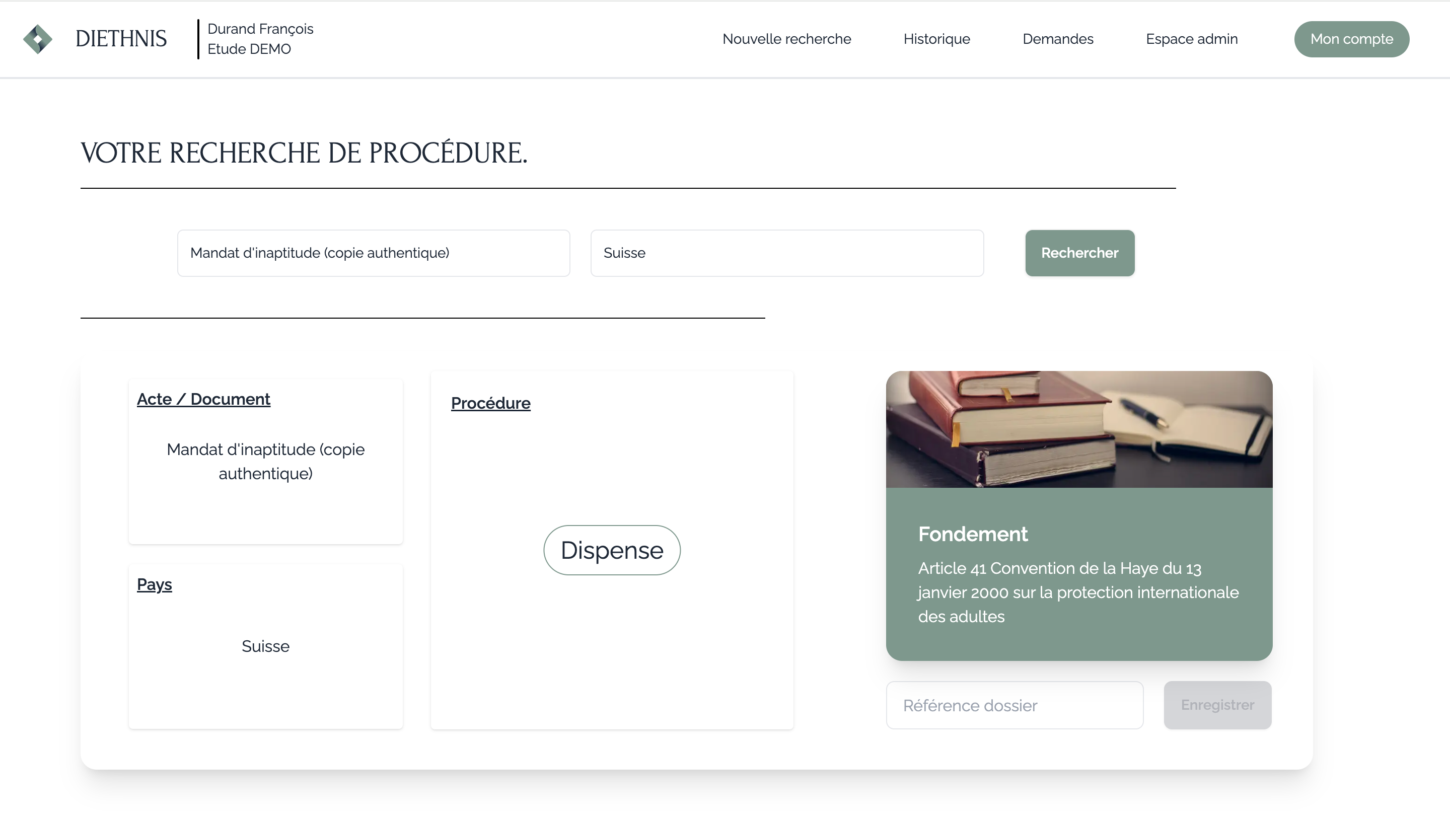 Diethnis vous permet "en 1 click" de savoir si votre acte ou document, à destination ou en provenance de l'étranger, doit faire l'objet d'une légalisation, d'une apostille ou en est dispensé.